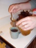 If you are unfamiliar with the stages of cooking sugar syrups here is the simple explanation. As sugar syrup is boiled, the water in it is slowly evaporated, allowing the syrup to become hotter and hotter. The names of the stages correspond to how the syrup behaves when a spoonful is dropped into ice water. The more concentrated the sugar solution is, the firmer it becomes upon cooling. The thread stage is on the very low end of the spectrum, followed by soft ball, firm ball, and other stages that are not of concern to these instructions. The stages terminate in caramel, which terminates in carbon if you cook it long enough, but I digress.